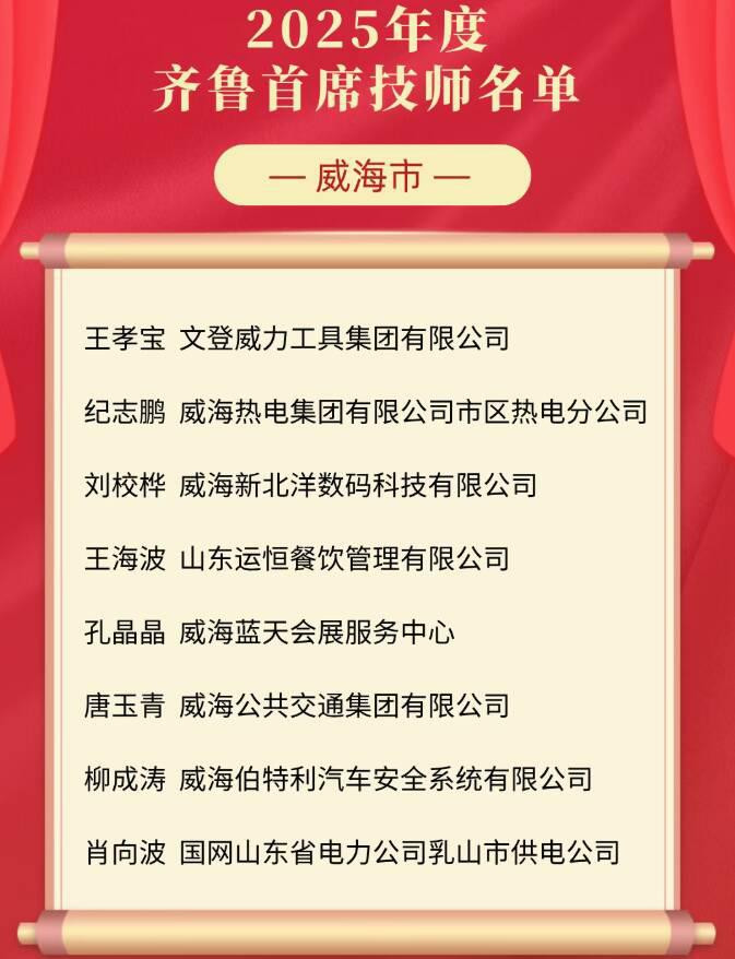 2025年度都鲁首席技师, 威海8东谈主上榜